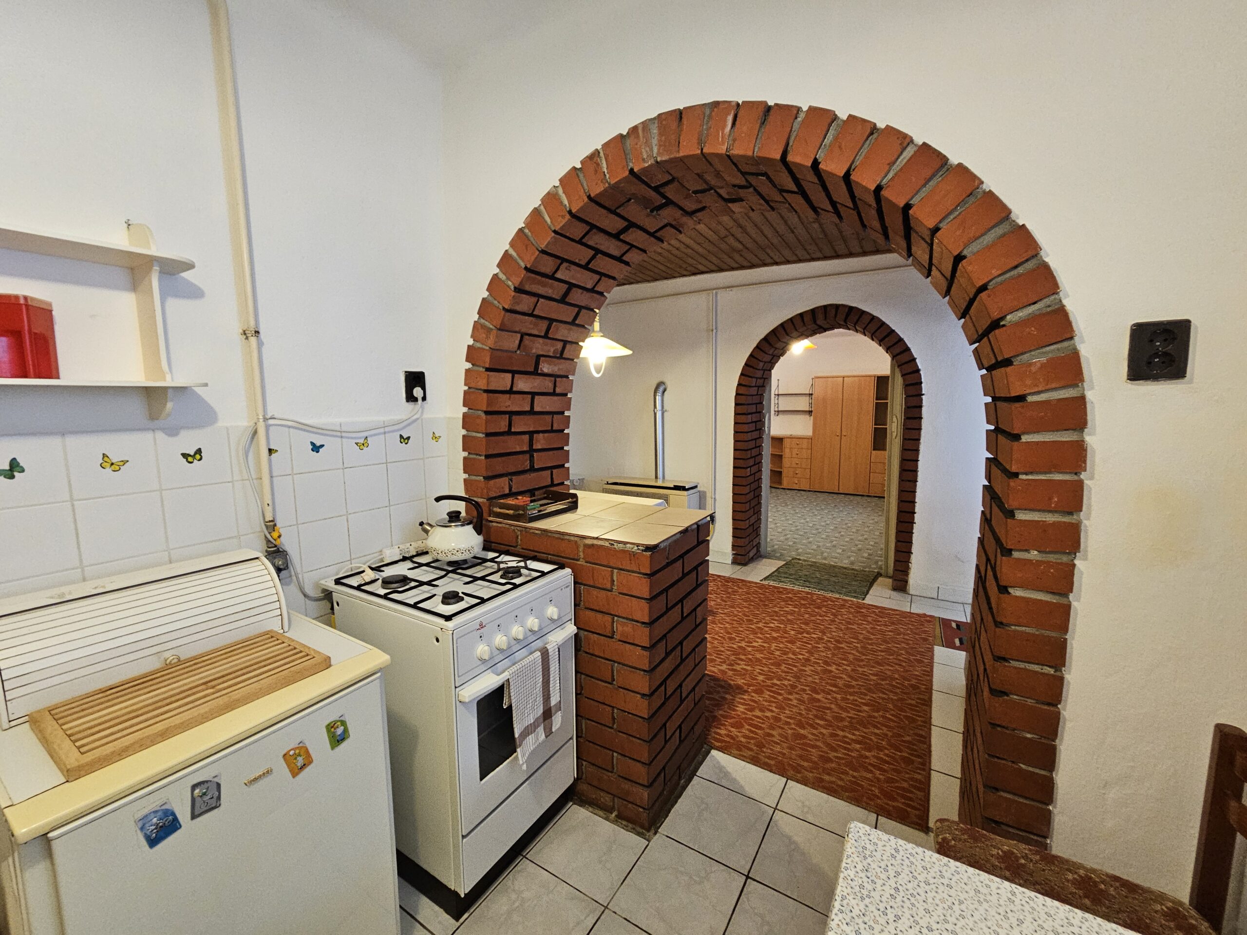 Az utcafronti, tégla falazatú bővítményben 2 db, egymásból nyíló, 18 m²-es szoba található.