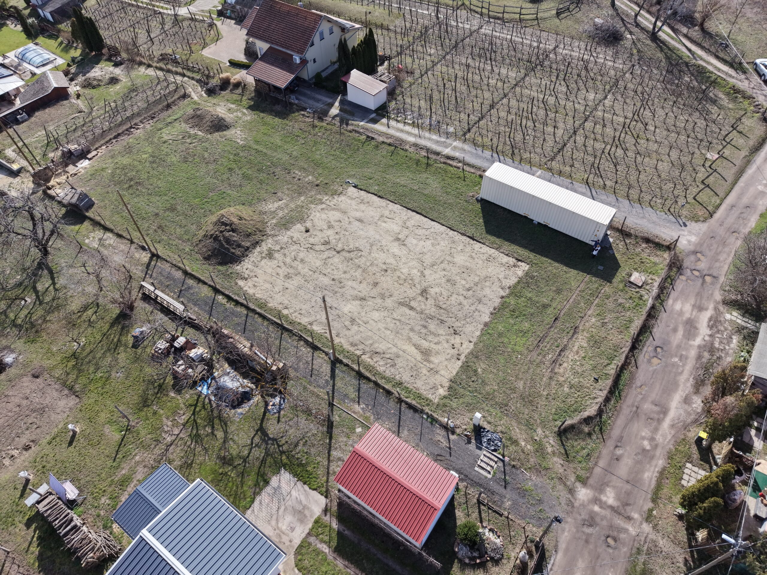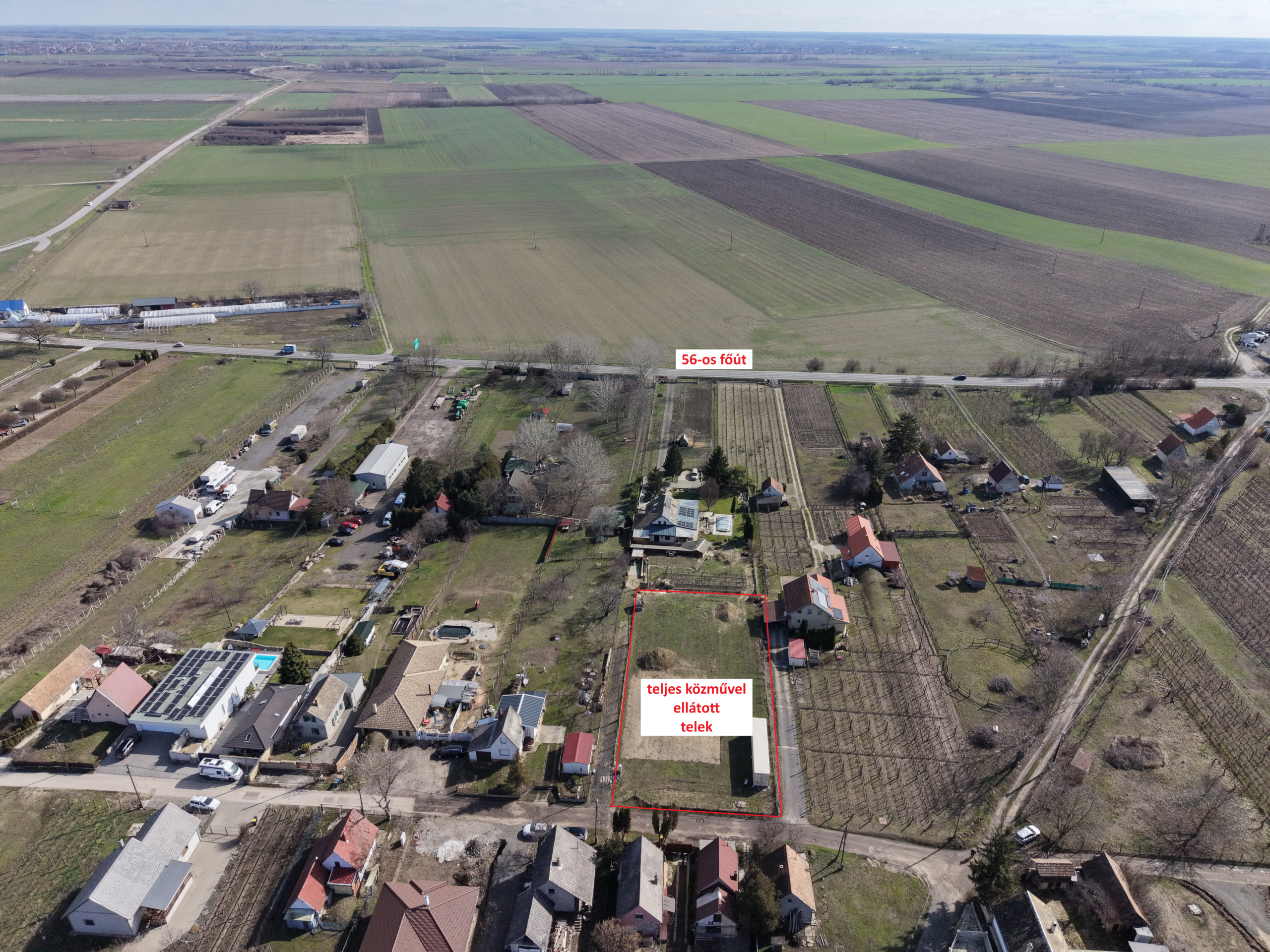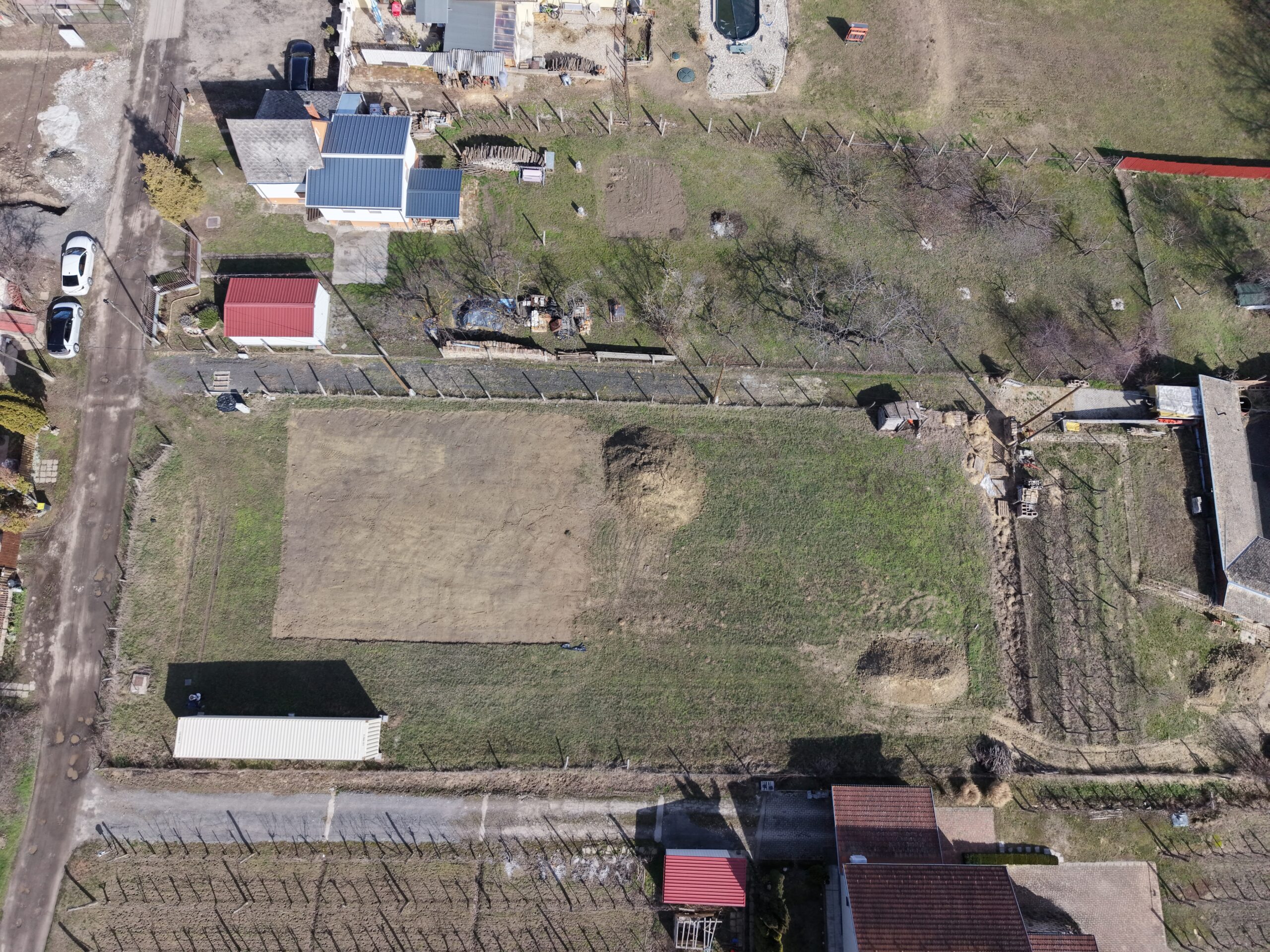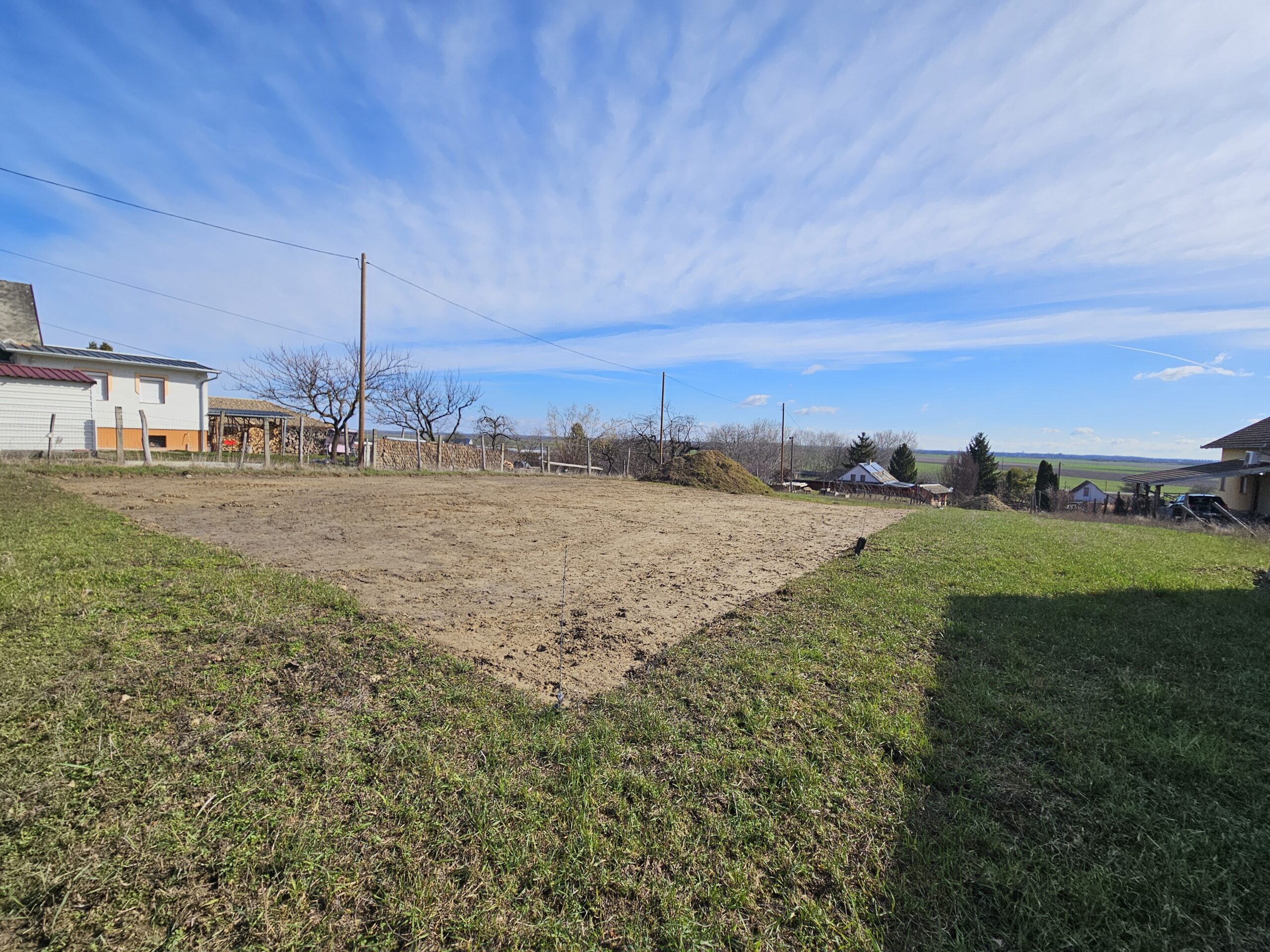 A telek rendezett, jól áttekinthető állapotú és körbekerített, így azonnal birtokba vehető. A terület egy része már előkészítésre került az építkezéshez, sík, könnyen használható felülettel.